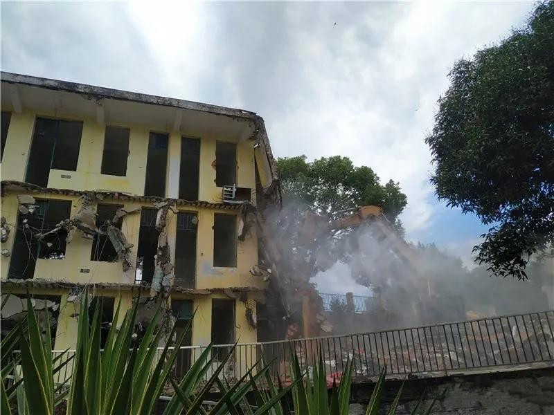 ▲(鉤機正在拆除鴻尾中學(xué)實驗樓)