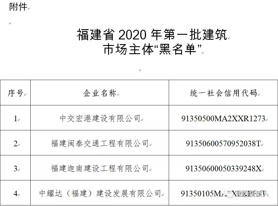 附件:福建省2020年第一批建筑市場(chǎng)主體“黑名單”