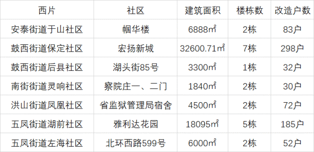 其中,西片工程涉及5個(gè)街道的7個(gè)社區(qū),改造戶數(shù)為752戶,總建筑面積73223.71㎡。估算總投資 1937.95萬(wàn)元,建設(shè)內(nèi)容包括飾工程、安裝工程、排水工程以及室外配套工程等。