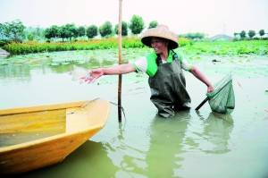 “幸運的游客可以在游船時看到漁民捉魚的情景。”蓮花水鄉(xiāng)的工作人員告訴記者,現(xiàn)在景區(qū)共有10條疍家漁船,撐船者都是當(dāng)?shù)貪O民,閑暇時他們會在湖中捉魚,頗有江南魚米鄉(xiāng)之感。